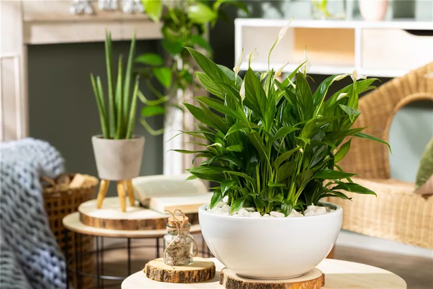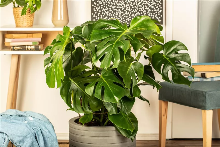Spathiphyllum floribundum Unangefochten auf Platz 1 der besten Pflanzen fürs Homeoffice ist das Fensterblatt, auch als Spathiphyllum bekannt. Das Fensterblatt ist eine besonders pflegeleichte Zimmerpflanze und kommt auch mit dunklen Ecken im Haus zurecht. Als perfekte Pflanze fürs Homeoffice reinigt sie die Raumluft und filtert Schadstoffe hinaus. Vor allem Benzol, das durch Drucker entsteht und die sind ja vor allem im heimischen Büro zu finden. Außerdem reichert die Pflanze die Luft deutlich mit Sauerstoff an und hat ganz nebenbei auch noch hübsche weiße Blüten zu bieten. Ebenfalls für schattig Stellen geeignet ist unter den Pflanzen fürs Homeoffice der Gummibaum. An einem dunklen Fleck braucht er zwar weniger Wasser, punktet aber auch mit seinen Eigenschaften. Die Pflanze reinigt ebenfalls die Raumluft und reichert sie mit Sauerstoff an. Und eine absolute Trendpflanze darf unter den Top 3 natürlich nicht fehlen. Die Monstera ist eine der beliebtesten Pflanzen fürs Homeoffice. Trotz ihrer exotischen Herkunft ist sie besonders anspruchslos und pflegeleicht und bedankt sich mit einzigartigen Blättern, die uns guttun. Die Monstera gehört ebenfalls zu den luftreinigenden Pflanzen und steigert die Qualität der Raumluft enorm. Sie ist gut für das Raumklima und sind ein guter Sauerstoffspender. Außerdem sorgen die großen Blätter für Ruhe und wirken harmonisch.