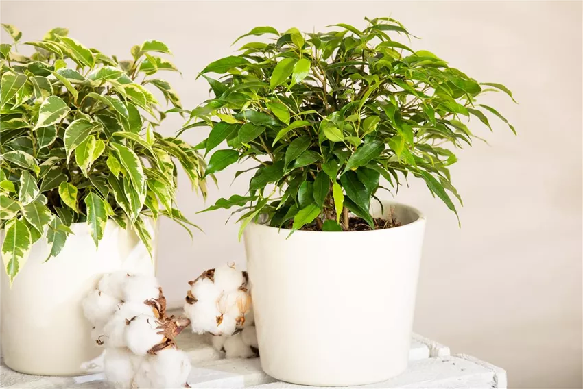 Ficus benjamina 'Green Kinky' Dass Zimmerpflanzen bei Pflanzenfreunden einen festen Platz in Haus und Herz haben, ist nicht verwunderlich. Sie sorgen für Wohlfühlstimmung und machen das eigene Zuhause noch gemütlicher. Sie sehen schön aus und man freut sich, wenn sich neue Blätter oder Blüten bilden. Aber noch viel wichtiger sind Pflanzen im Haus, weil sie mehr können. Wenn zu Hause nicht nur gelebt, sondern auch gearbeitet wird, sind Pflanzen fürs Homeoffice eine gute und gesunde Idee. Denn viele Zimmerpflanzen haben tolle Eigenschaften, von denen wir profitieren können. In erster Linie reinigen Pflanzen fürs Homeoffice die Luft, indem sie den Gehalt an Kohlendioxid in der Luft senken und Sauerstoff produzieren. Das macht uns vor allem im Büro wacher, leistungsfähiger und konzentrierter. Jeder kennt es, wenn im Büro die Luft steht und man erst einmal ein Fenster öffnen muss. Das machen Pflanzen im Homeoffice zwar nicht mit der Intensität, aber sie verbessern die Luftqualität deutlich. Außerdem filtern sie Schadstoffe aus der Luft, die von Elektrogeräten oder Möbeln an unsere Raumluft abgegeben werden. Und als ob das noch nicht genug positive Eigenschaften wären, sind Pflanzen fürs Homeoffice auch gut für unsere Atemwege. Denn die Pflanzen erhöhen die Luftfeuchtigkeit und sind damit auch gut für Haut und Augen.
