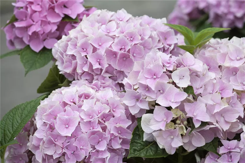 Hydrangea macrophylla Hortensien sind besondere Schmuckblüten des Herbsts. Ihre Beliebtheit als Schnittblume steigert sich von Jahr zu Jahr. Die aus vielen Einzelblüten bestehenden Blütenbälle verzaubern mit zarten Farbtönen in Blau, Rosa und Weiß.