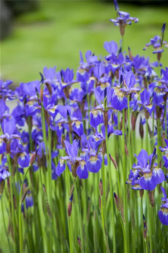 Iris Ganz das Gegenteil von diesem Knalleffekt bewirkt die Farbe Blau. Ihre Kühle erzeugt Weite und schenkt Ruhe. Tiefe Blautöne vermitteln Vertrauen und signalisieren Verlässlichkeit. Große Flächen können auch Sehnsüchte wecken und einen Hauch von Mystik mit sich bringen, zum Beispiel wenn der Blaustern sich weitläufig durch den Steppengarten ausbreitet. Schwertlilien und Herbstastern sind mit herrlichen blauen Blüten vertreten und bieten viele Möglichkeiten für Beete und Rabatten. Wunderbare ruhige Inseln dazwischen entstehen mit dem Blauschwingel. Eine Kombination mit Weiß erfrischt und entspannt zugleich, zum Beispiel in der ganz einfachen Zusammenstellung von blauem und weißem Rittersporn. Ein Zusammenspiel mit der komplementären Farbe Gelb bringt spannenden Kontrast ins botanische Geschehen. Mädchenauge und Sonnenhut bieten sich hier an.