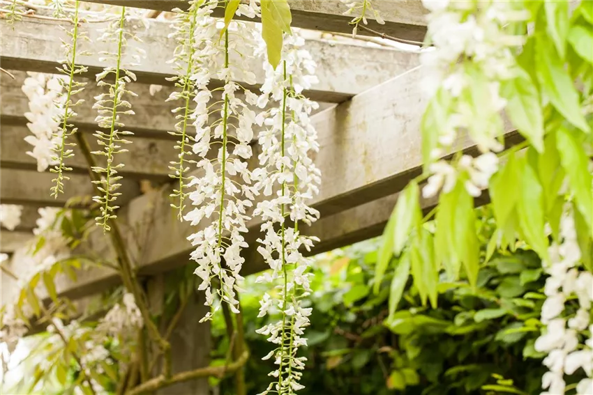 Wisteria floribunda Aber auch Pavillons und Pergolen können für angenehmen Schatten sorgen, egal ob mit festem Dach, mit Segeltuch bespannt oder mit schönen Kletterpflanzen wie Goldregen, Clematis, Passionsblume, Kletterrosen, Wilder Wein und Efeu. Aber auch Spalierobst, wie Aprikosen, Mirabellen, Pflaumen, Äpfel und Birnen verschönern Ihren Sitzplatz und auch Trauben und Kiwis erfreuen durch leckeres Obst.