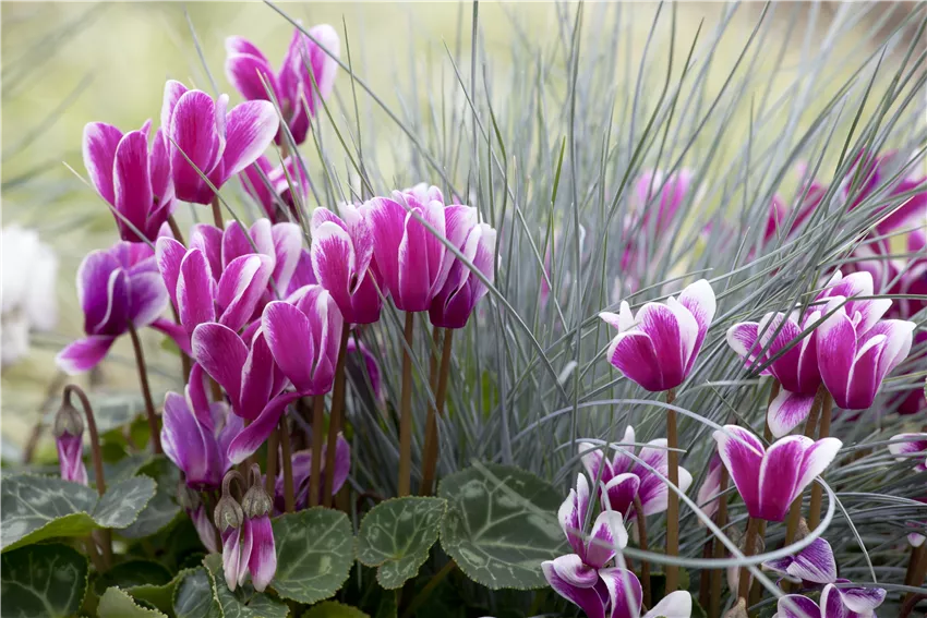 Cyclamen persicum Am bekanntesten sind die Alpenveilchen als Topfpflanze für die Wohnung. Hier blühen sie in vielen Farben und erfreuen auch in der kalten Jahreszeit ihren Besitzer. Doch auch nach draußen dürfen sie gepflanzt werden – jedoch sind die üblichen Hybriden nicht winterhart und daher nur im Sommer für den Garten geeignet. Allerdings gibt es besondere Arten, die selbst harte Fröste überdauern. Dazu zählt beispielsweise das Anatolien-Alpenveilchen. Wer diese Kulturart bevorzugt, sollte möglichst kleine Knollen aus Kulturbetrieben kaufen und am Standort nicht den Boden aufhacken. So bilden die Alpenveilchen nach einer Weile dicke Teppiche mit herrlichen Blüten.
