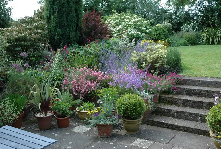 An der Blumentreppe führt einfach kein Weg vorbei. Warum auch, schließlich ist sie zeitlos und bringt die hübschen Blumen gut zur Geltung. Blumentreppen gibt es in den unterschiedlichsten Ausführungen. Sie sind rund oder eckig, verziert und romantisch oder schlicht und elegant. Es gibt sie aus Holz oder aus Metall. Aber egal welche Variante gewählt wird: eine Blumentreppe ist immer „in“. Größe und Design richten sich nach dem Geschmack des Hobbygärtners. Ob groß und auffällig oder klein und dezent – der Kreativität sind keine Grenzen gesetzt. Und wem die Modelle im Fachhandel nicht gefallen, der kann auch selbst handwerklich tätig werden und eine Blumentreppe selbst bauen. Oder wie wäre es mit Upcycling? Aus einer alten Klapp-Treppenleiter lässt sich auch kinderleicht eine Blumentreppe bauen. Natürlich lässt sich auch eine richtige Treppe mauern, um unterschiedliche Bereiche im Garten zu verbinden.