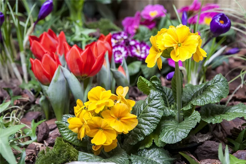Osterglocke, Tulpe und Hyazinthe sind klassische Frühblüher für den Balkon. Nachdem die Herbstbepflanzung ihre Schönheit eingebüßt hat, kann sie entfernt werden und macht Platz für die bunte Frühlingsblüte.