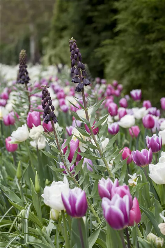 Tulipa, rosa Stauden und Blumenzwiebeln haben eines gemeinsam: Beinahe das ganze Jahr über verzaubern sie uns mit ihren herrlichen Blüten! Dadurch eignen sie sich hervorragend für geschickte Kombinationen.